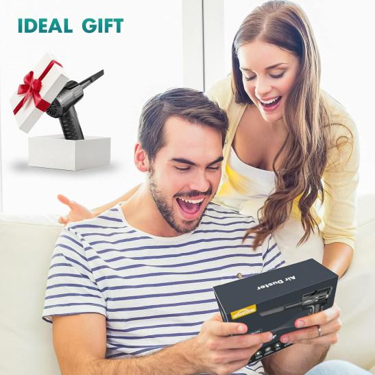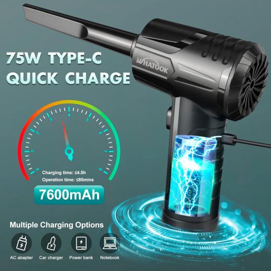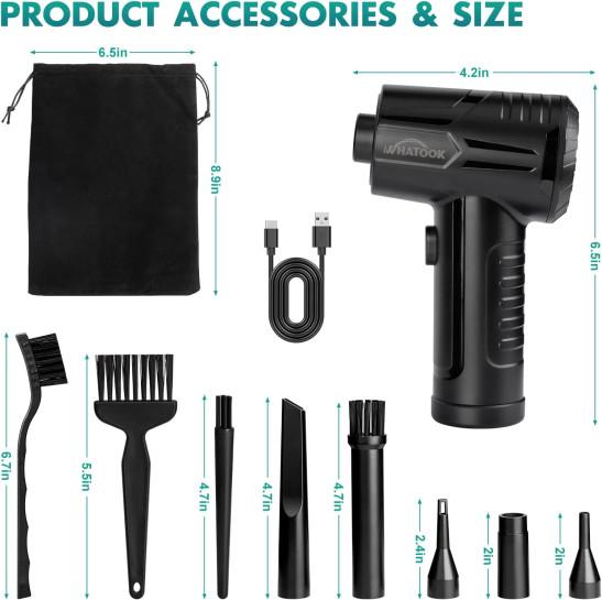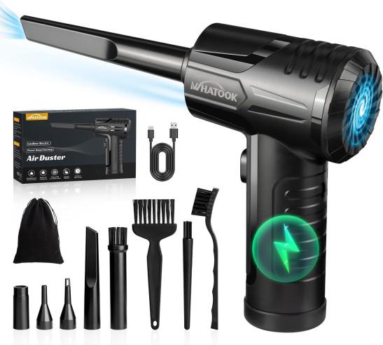 WHATOOK Compressed Air Cleaner for PC - Electric Air Duster, 10000RPM Super High Power Keyboard Cleaner with 3-Gear Speed, Led-Light, Rechargeable Compressed Air Blower for Laptop, Car & Home Cleaning