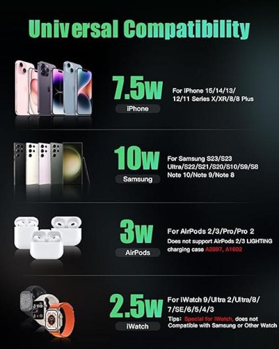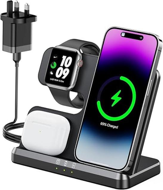 Wireless Charger for iPhone/Apple Watch/AirPods, 3 in 1 Wireless Charging Station for iPhone 15 14 13 12 11 Pro Max/X/8, Apple Watch Charger for iWatch 9/Ultra/SE/8/7/6/5/4/3/AirPods Pro 3 2