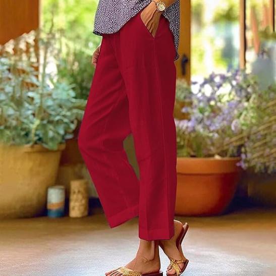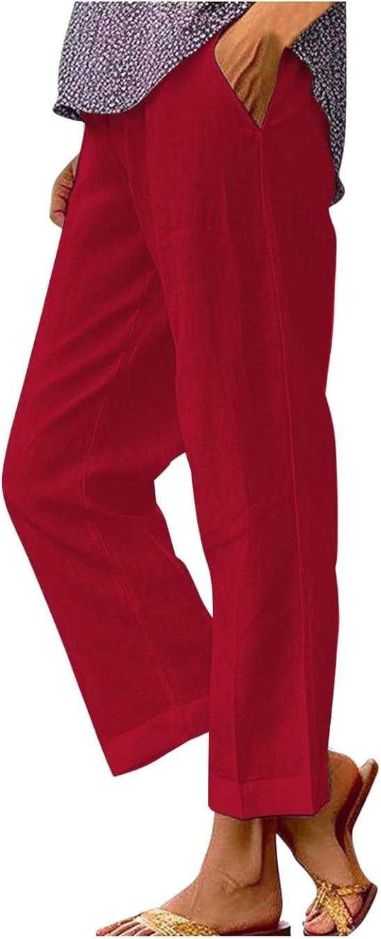 Women Solid Straight Solid Elastic Pants Long Drawstring Linen Women Waist Cotton Casual Pants Leggings with Pockets for Women Plus Size
