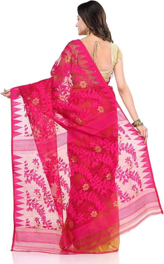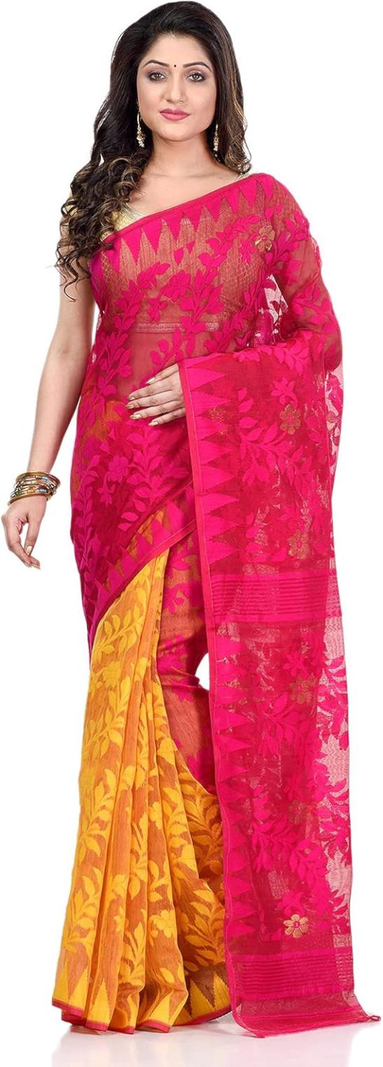 Women`s Bengal Handloom Tant Soft Dhakai Jamdani Cotton Saree Whole Body Design Without Blouse Piece 5.5 Mtr