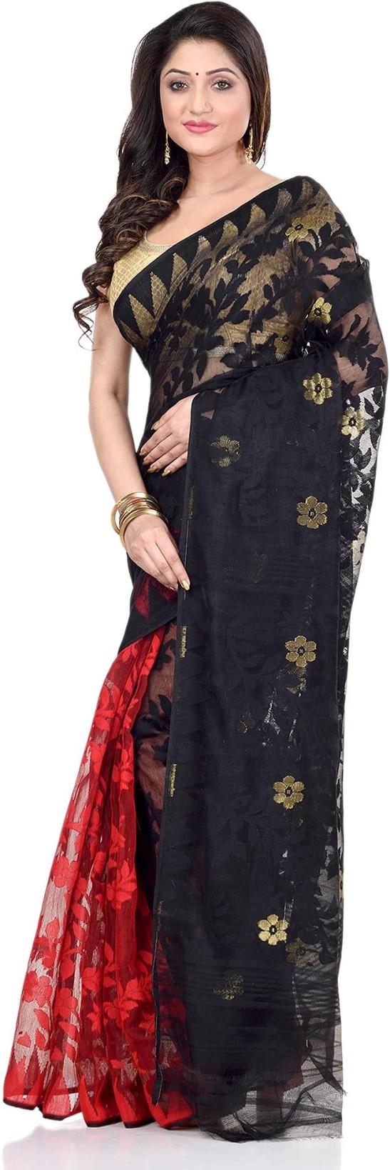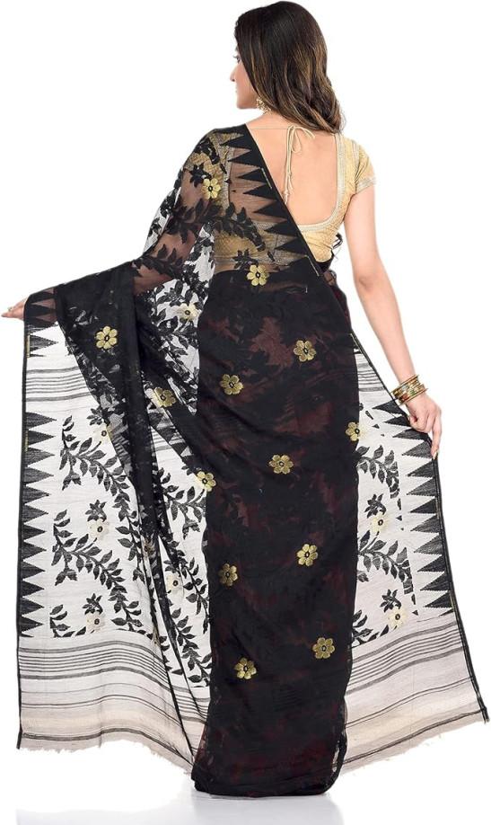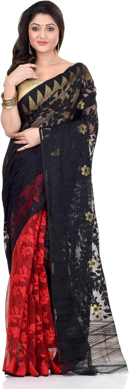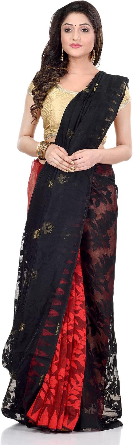 Women`s Bengal Handloom Tant Soft Dhakai Jamdani Cotton Saree Whole Body Design Without Blouse Piece 5.5 Mtr