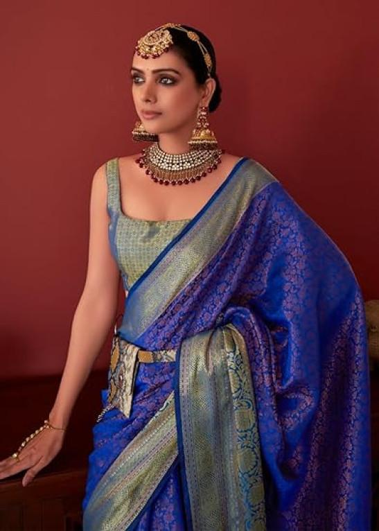 Women's kanjivaram banarasi silk saree Zari Woven festival Wedding silk sarees for women with Unstitched blouse piece