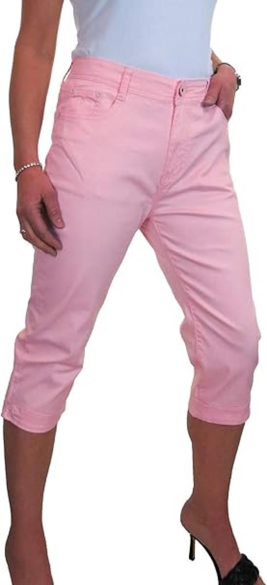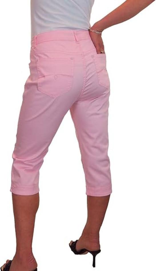 Women's Stretch Cropped Jeans Ladies Casual Everyday Summer Comfy Slim 3/4 Length Capri Trousers Pastel Pink 14-24