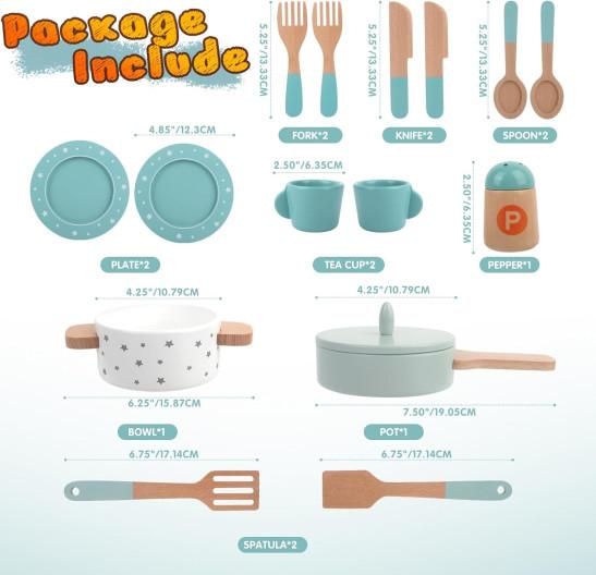 Wooden Toddler Toy Kitchen Pots and Pans, Toy Kitchen Accessories, Role Play Cookware Set, Pretend Play Cooking Simulation Educational Toys for Boys and Girls 3 4 5 6 7 8 Year Olds