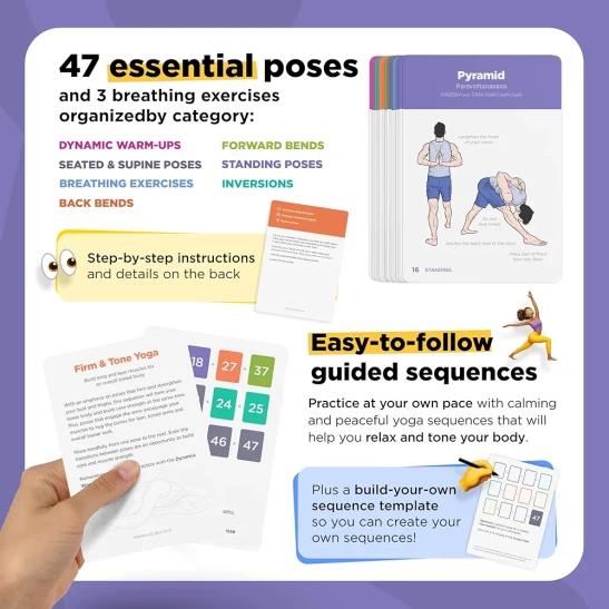 WorkoutLabs YOGA CARDS - Beginners: Professional Visual Study, Class Sequencing & Practice Guide with Essential Poses, Breathing Exercises & Meditation - Yoga Flash Cards/Yoga Deck with Sanskrit