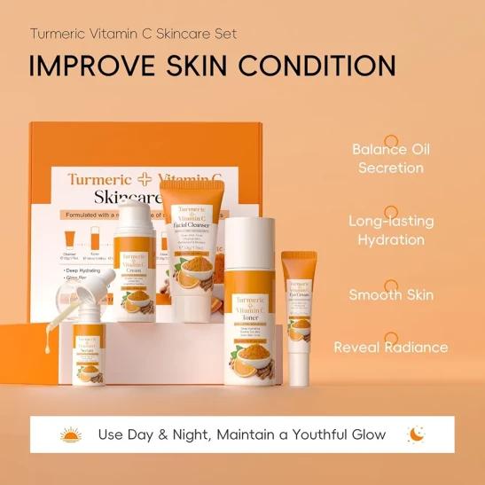 Xmas Gifts for Women Turmeric Skincare Set, Vitamin C Skin Care Set with Face Cleanser, Toner, Serum, Eye Cream, Moisturiser, Even Skin Tone, Anti Aging Skin Care Gift Kit for Teenage Girls 5 pcs