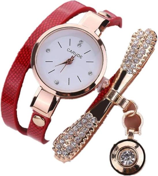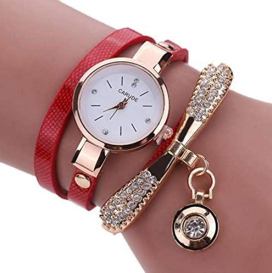 Xmirla Wrist Watch Women Girls Faux Leather Band Rhinestone Analog Quartz Watches with Pendant