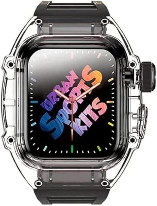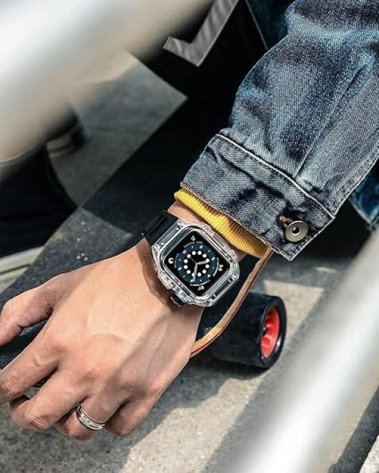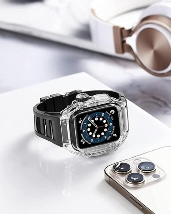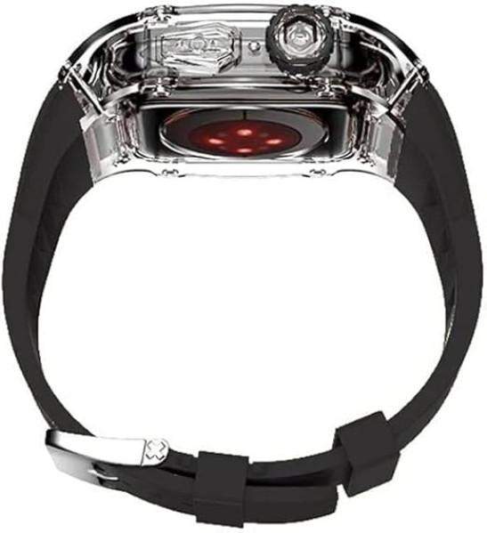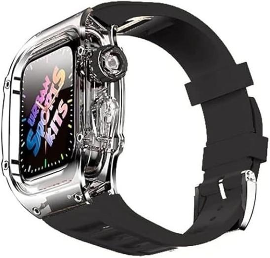 XNWKF Ice Clear Watch Case With Fluororubber Watch Strap Modification Kit,For Apple Watch Series 8 7 45mm,Transparent Cover Watch Band,For Iwatch SE 6 5 4 44mm