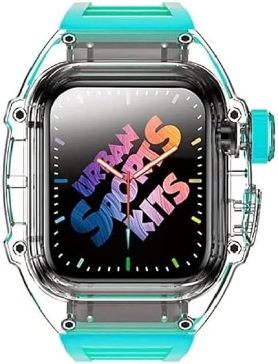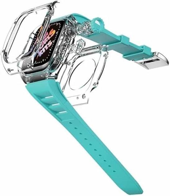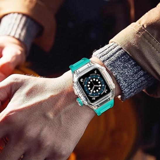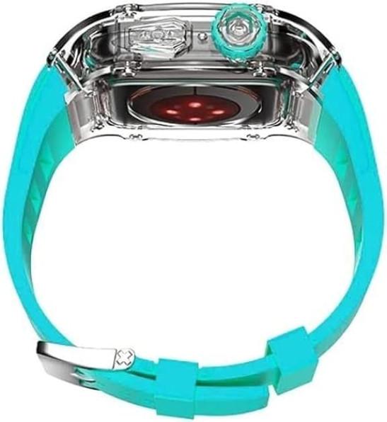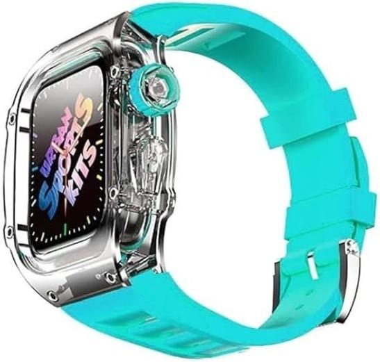 XNWKF Ice Clear Watch Case With Fluororubber Watch Strap Modification Kit,For Apple Watch Series 8 7 45mm,Transparent Cover Watch Band,For Iwatch SE 6 5 4 44mm