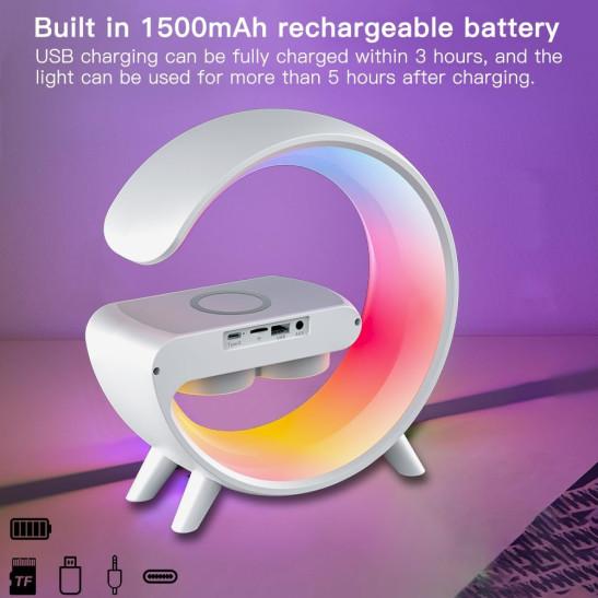 YumCute Home Atmosphere Table Lamps with Wireless Charger Bluetooth Speaker G11 Ambient Light – 15W LED Bedside lamp with Time Display White Color