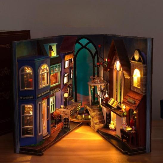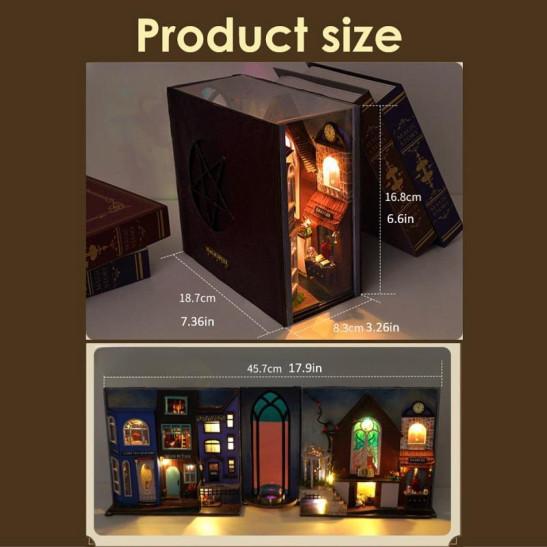 1 Box DIY Miniature Kit with LED Light for Desk Library Bookshelf Decoration For Teenagers And Adults , The Perfect Gift For Birthday & Christmas