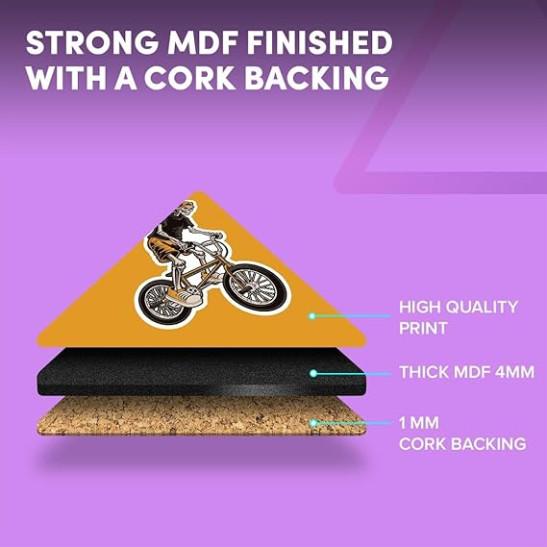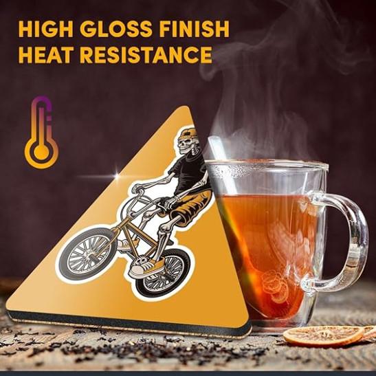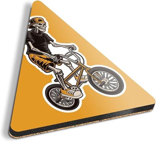 1 x Triangle Coaster - Biker Skeleton Jumping Bike Cork Backed MDF Glossy Tea