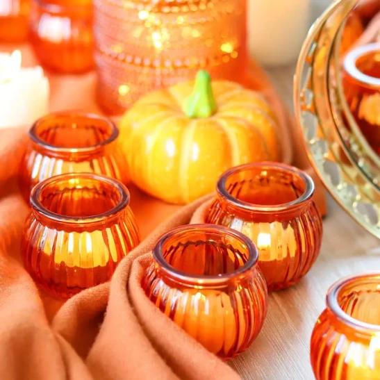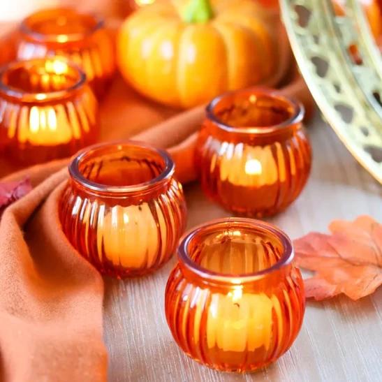 12 Traditional Glass Pumpkin Candle Holders: Perfect for Thanksgiving, Halloween