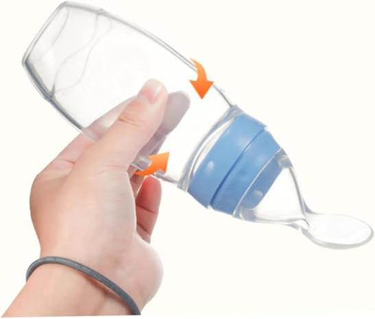 120ML Baby Silicone Squeeze Food Feeder Spoon with Lid Food Dispensing Spoon for Baby Toddler Infant Fresh Food Bottle Feeder Include Nipple and Spoon Blue OPP Bag Packaged, Food Bottle Feeder