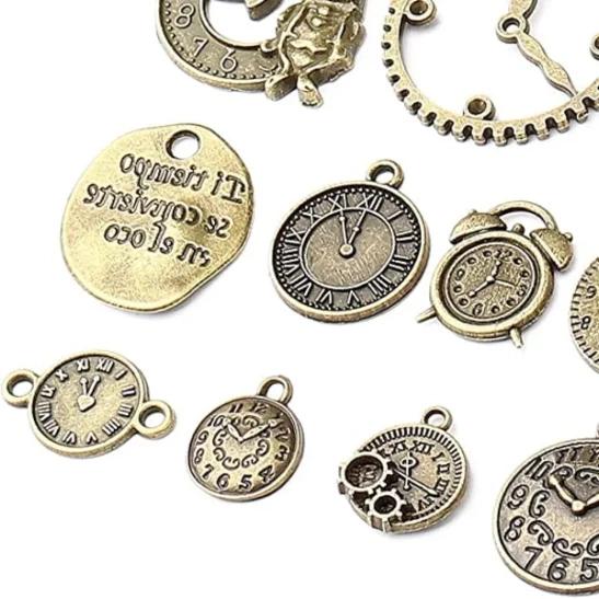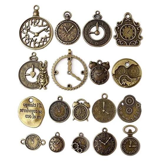 18 Pcs/set Clock Pendant Charms, Multicolored Mixed Antique Bronze Watch Gear Cog Wheel Charms Steampunk Clock Pendant DIY Jewelry Making Accessories