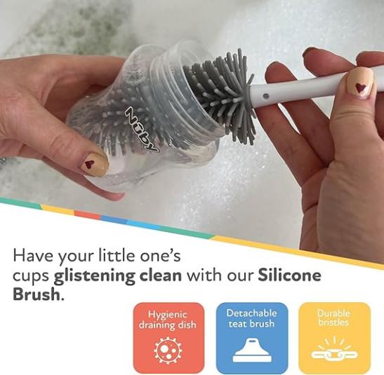 2 in 1 Bottle and Teat Cleaning Brush with Hygiene Stand, White