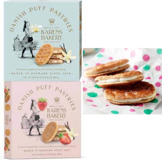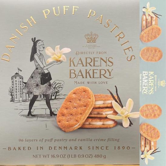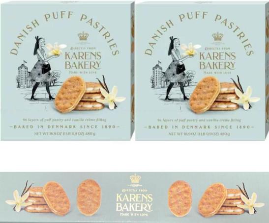 2 Packs Karens Bakery Danish Puff Pastries Cookies Vanilla and Strawberry Flavor, Layers of Pastries with Vanilla Crème/Strawberry Filling 480g Each | 96 Layers of Puff Pastry (Vanilla)