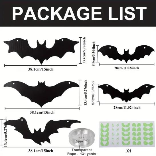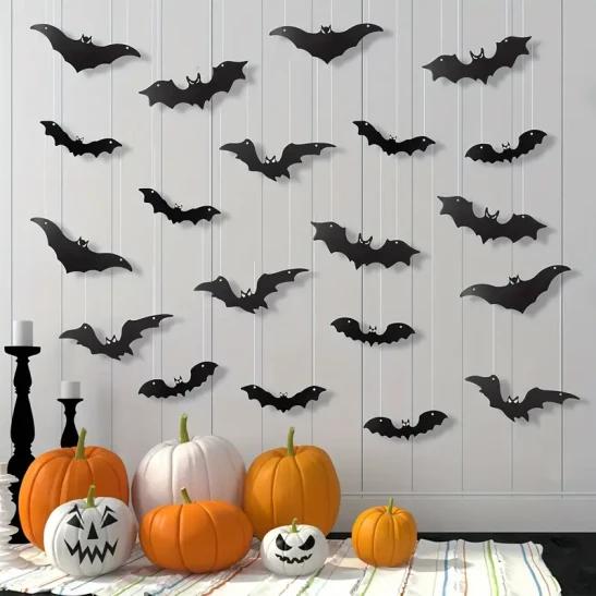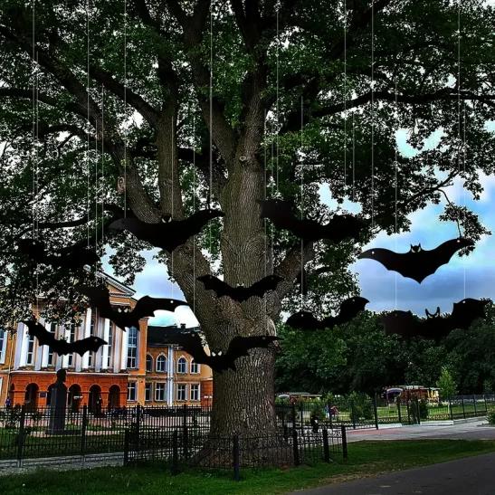 20pcs Glow-in-the-Dark Halloween Bats - Realistic Fake Black Bats with Glowing Eyes