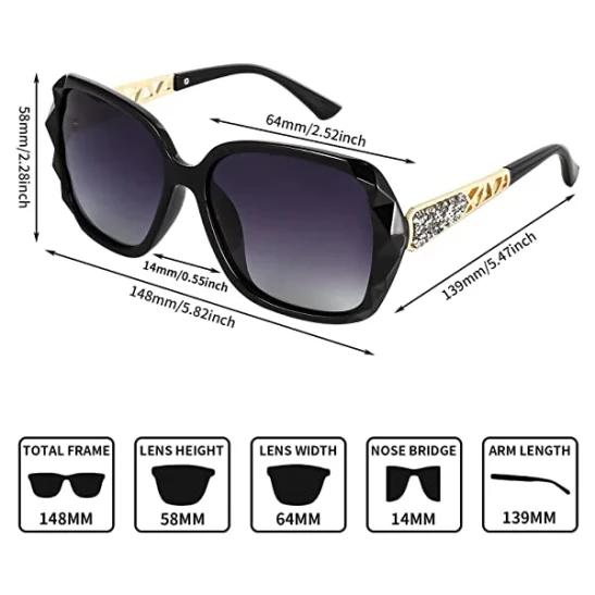 2pcs Women Large Sunglasses, Classic Trend Ladies Sunglasses UV400 Protection Oversized Polarised Sunglasses Sparkling Large Frame Sunglasses for Women