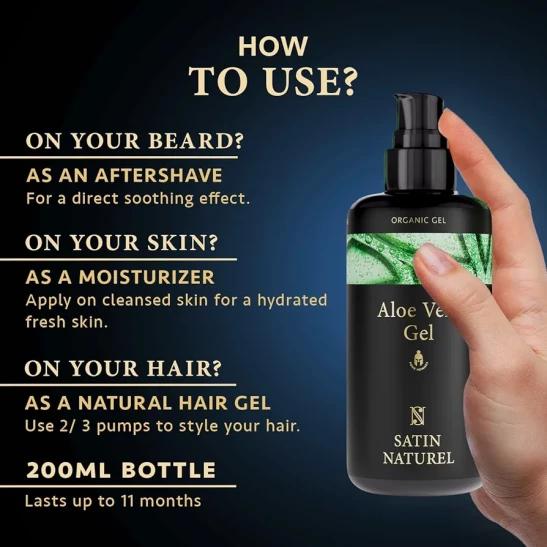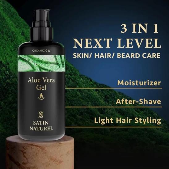3-in-1 Mens Aftershave Balm, Moisturiser & Hair Gel, 200ml - Aloe Vera Gel with Hyaluronic Acid