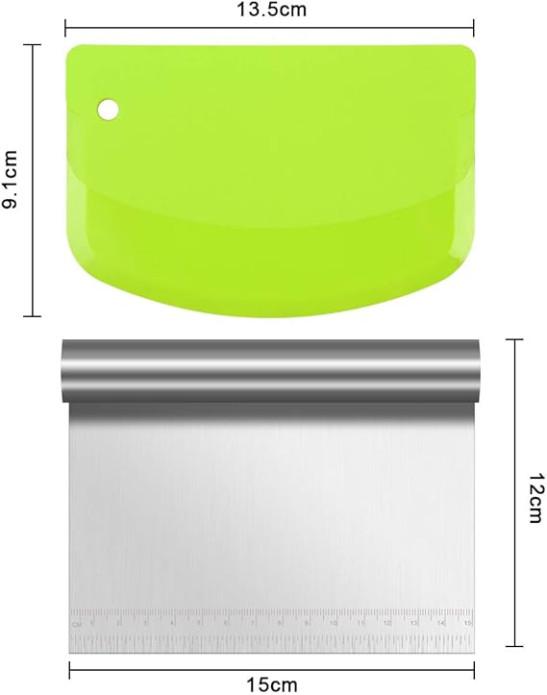 3 pcs set Stainless Steel Dough Scraper with Handle and Measuring Scale, Pastry Cutter Plastic Scraper Smoother Tool Set for Bread Pizza Cake Dough Baking Shaping Pizza Cutters