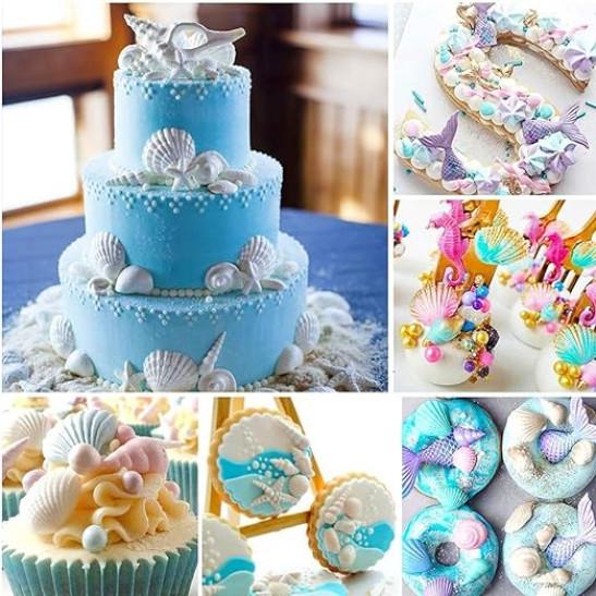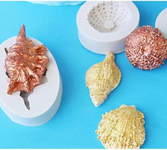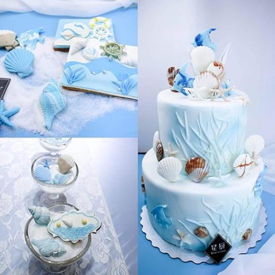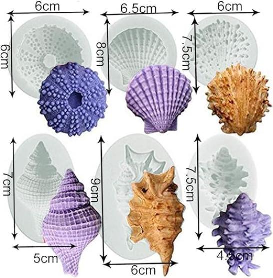 3D Ocean Animals Cake Chocolate Moulds Sea Shell Conch Cake Decorations Icing Candy Soap Baking Mould Tools Kitchen Sugarcraft DIY Handmade Gift Style of 6 Marine theme silicone mould
