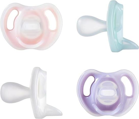 4 pack of one piece silicone Ultra-light Baby Soothers, 0-6 months