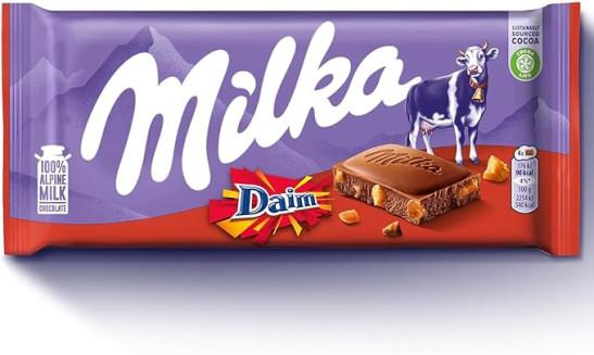 4 x Millka Alpine Daim Milk Chocolate Bar 100g with Gift Box