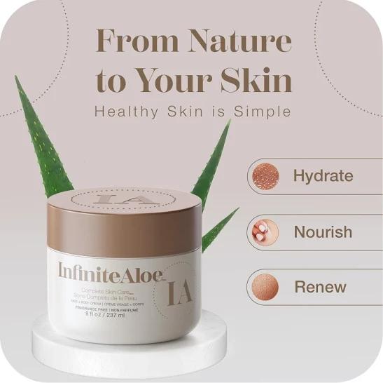 Aloe Vera Body & Face Moisturizer – Fragrance Free Face Cream, Body Cream, Hand Lotion for Dry Skin – 1 Large Jar (8 Oz.) & 1 Travel Jar (0.5 Oz.) – Full Body Lotion for Skin Care by InfiniteAloe