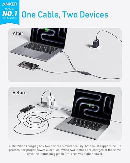 Anker USB C Cable, 4 ft 2-in-1 Type C Cable, 140W Max Fast Charging for iPhone