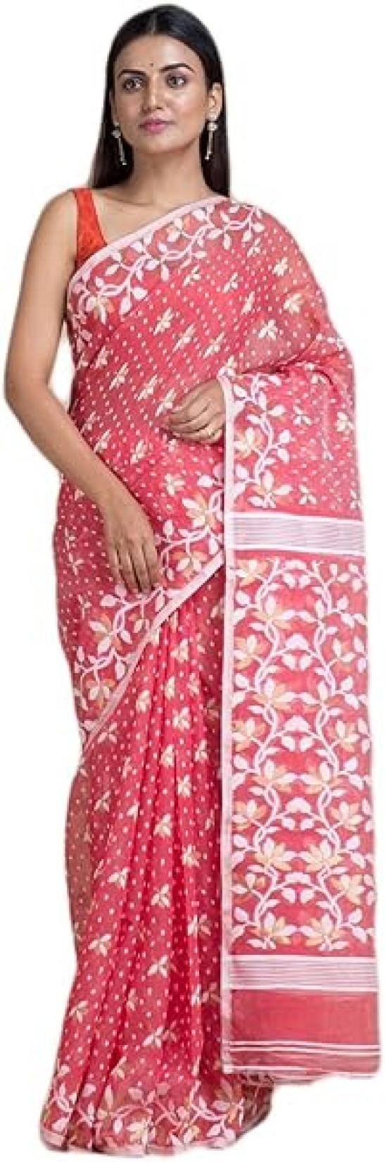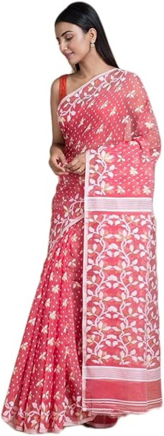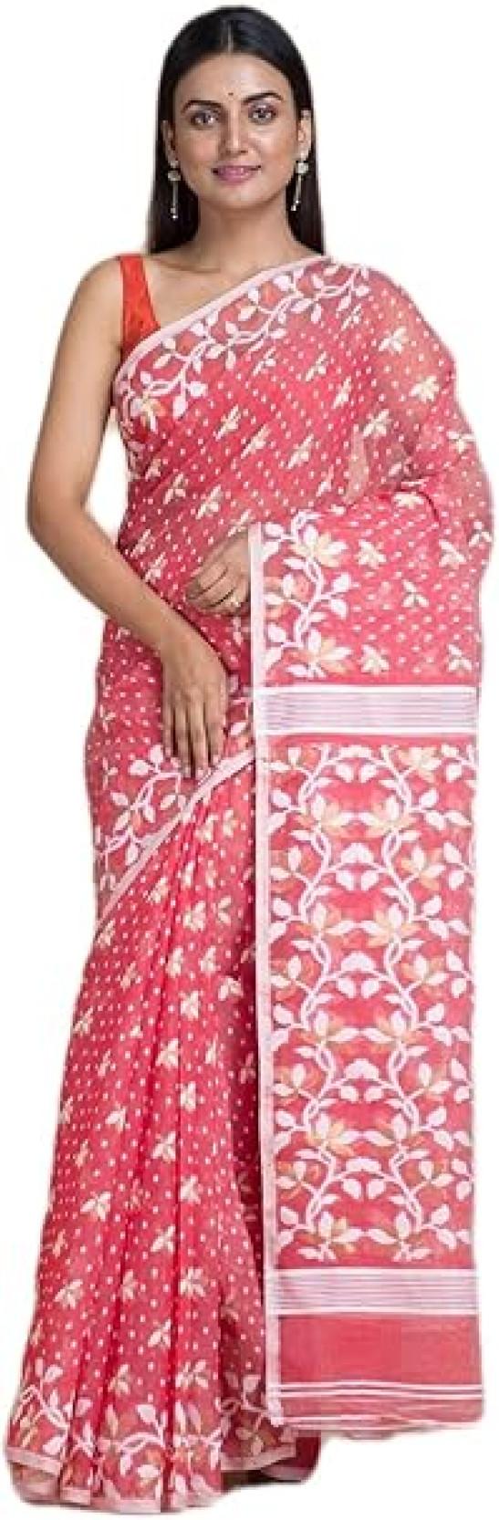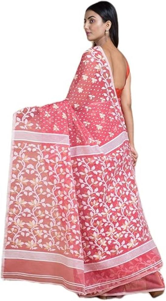 Ankita SAREE HOUSE Women's Traditional Bengal Cotton Silk Jamdani Saree, Pink, One size, Pink, One Size