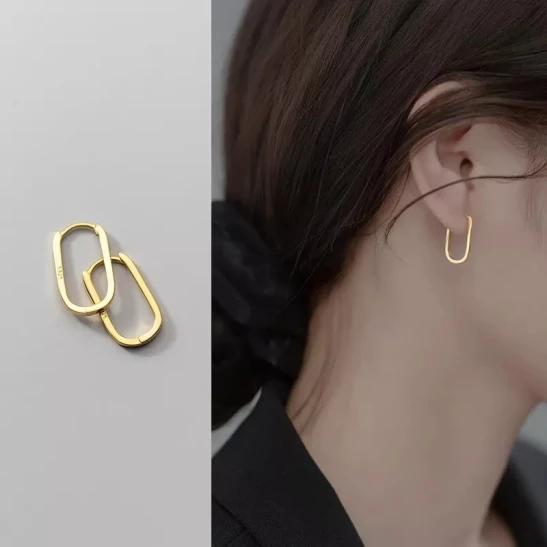 ANYCO 925 Sterling Silver Gold Huggie Earrings for Women – Small Oval Hoop Design – Boho Style, Hypoallergenic, Tarnish-Resistant Ear Buckle Jewellery