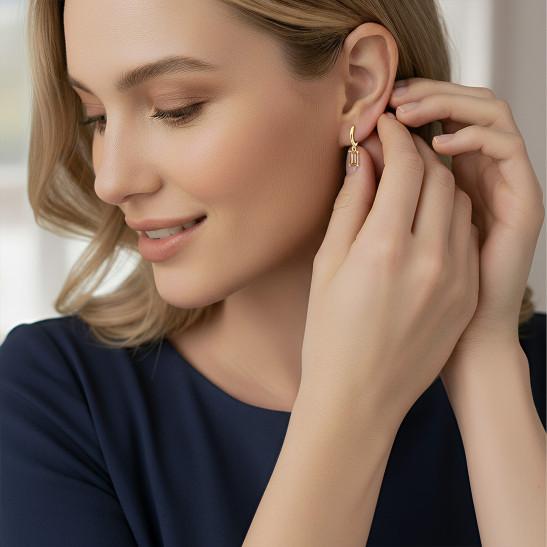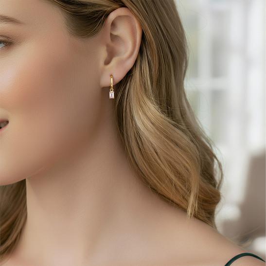 ANYCO 925 Sterling Silver Gold-Plated Drop Earrings – Light Yellow Geometric Square Design, 6 Colour Options – Chic Jewellery Gift for Women, Girls, and Teens