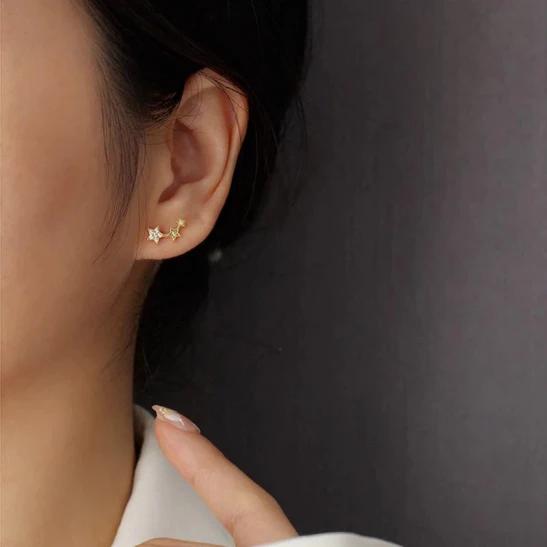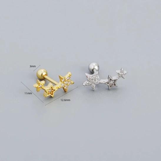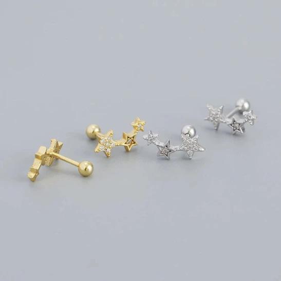 ANYCO 925 Sterling Silver Stud Earrings – Screw Bead with Gold Star and Zircon Detail for Women, Girls and Teens – Fashion Jewellery Gift