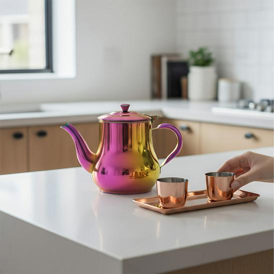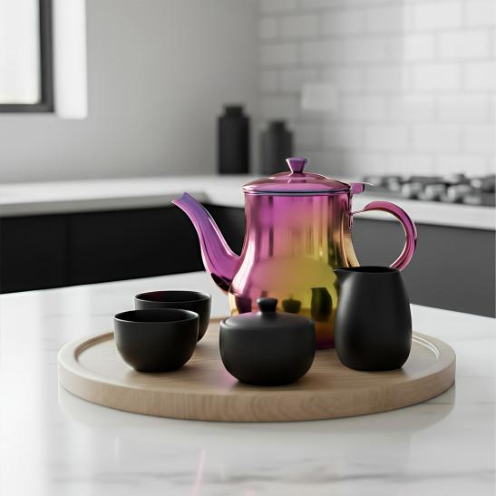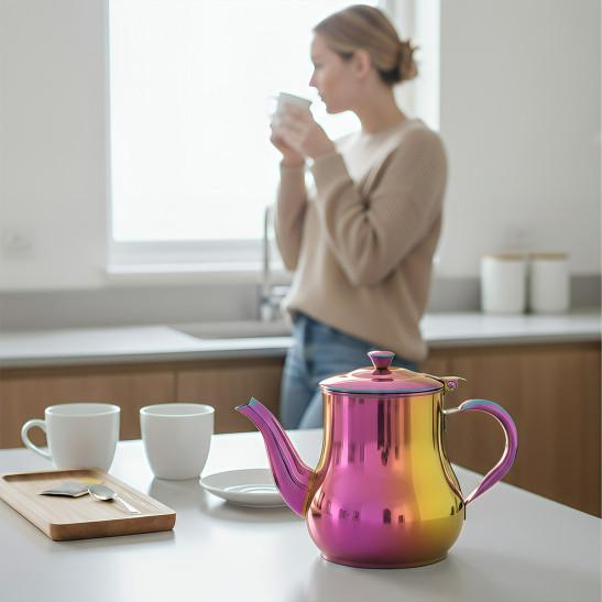 ANYGLEAM Pink Rainbow Stainless Steel Teapot – 18x14cm with Filter – Heat-Resistant Handle – For Tea, Coffee, Oil & Liquid Seasonings