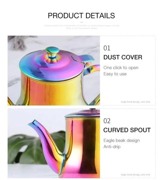 ANYGLEAM Rose Gold Stainless Steel Teapot – 18x14cm with Filter – Heat-Resistant Handle – Tea, Coffee, Oil & Liquid Seasoning Kettle