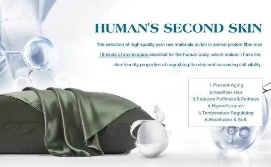 ANYHOUZ 100% Mulberry Silk Pillowcase – 50x90cm Green – Smooth Satin Finish for Hair & Skin – Hypoallergenic Breathable Luxury Bed Linen