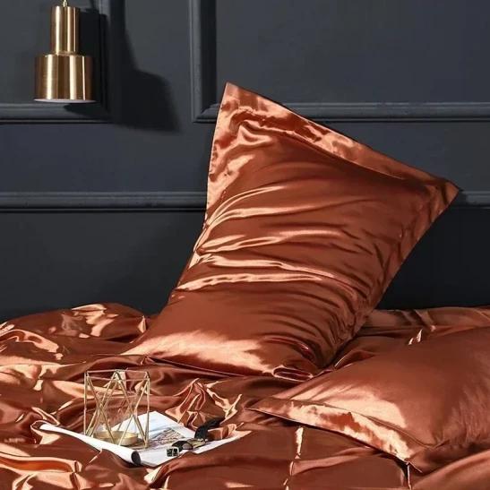 ANYHOUZ Pillowcase Orange Luxury Soft Natural Mulberry Silky Two Sided Satin Cover