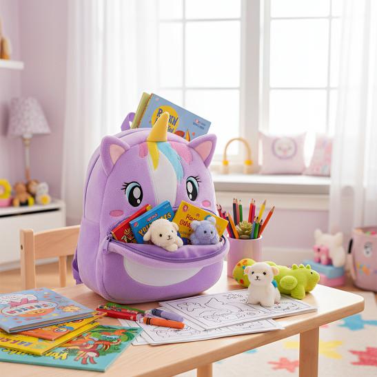 ANYKIDZ 3D Purple Unicorn Toddler Backpack – Soft Plush Cartoon Bag for Kids – Lightweight School Rucksack for Boys & Girls, Ideal for Nursery & Travel