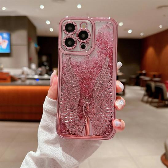 ANYMOB iPhone Case Pink Luxury Swan Fashion Bling Glitter Protective Shockproof