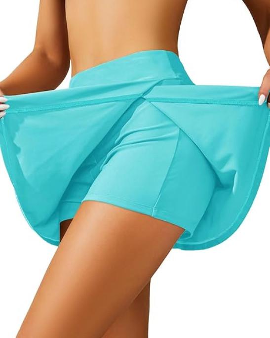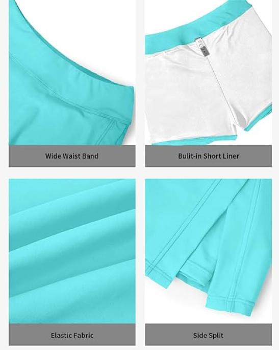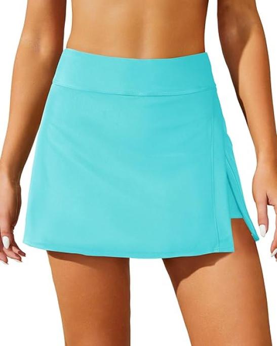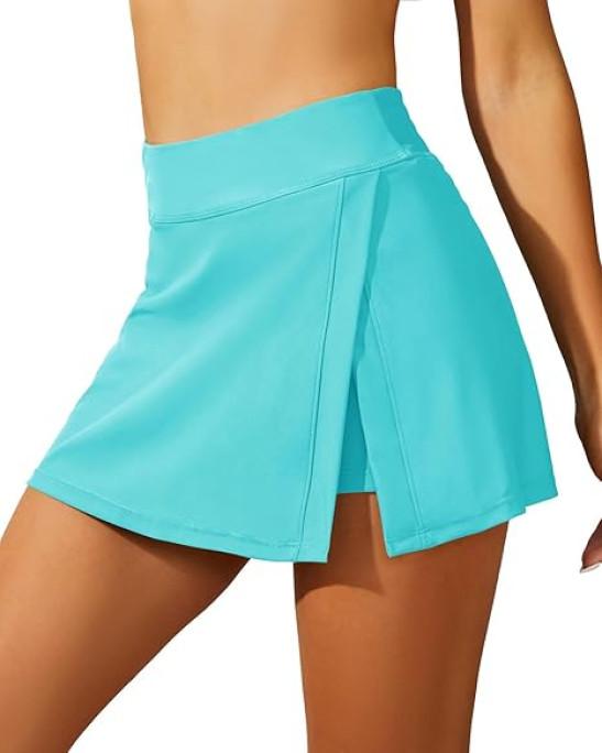 Aqua Eve Women Swim Skirt Tummy Control Swimsuit Skirt with Built-in Shorts High Waisted Split Swim Bottom