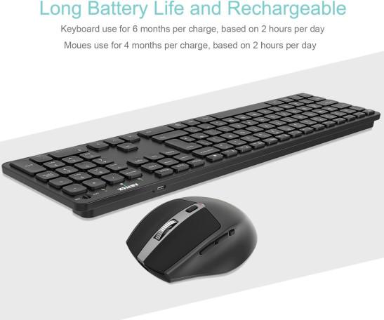 Arteck 2.4G Wireless Keyboard and Mouse Combo Ultra Slim Full Size Keyboard Keyboard and Ergonomic Mice for Computer Desktop PC Laptop and Windows 11/10/8/7 Build in USB-C Rechargeable Battery