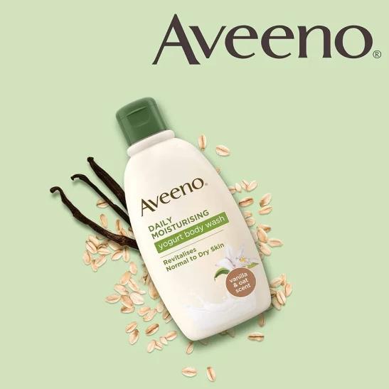Aveeno Daily Moisturising Yogurt Body Wash | Genltly Cleanses Normal to Dry Skin | Vanilla and Oat Scented | 300ml [Packaging may vary] (Pack of 2)