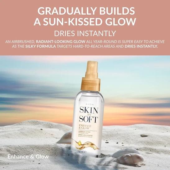 Avon Skin So Soft Enhance & Glow Airbrush Tanning Spray 150ml, Sun-Kissed Glow, Quick Drying, Easy to Use, Cruelty Free