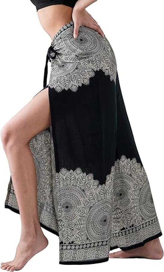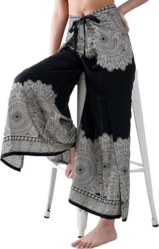 B BANGKOK PANTS Women's Boho Palazzo Pants Wide Leg Yoga Wrap Tie Up Waist