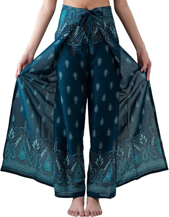 B BANGKOK PANTS Women's Boho Palazzo Pants Wide Leg Yoga Wrap Tie Up Waist