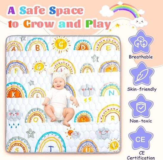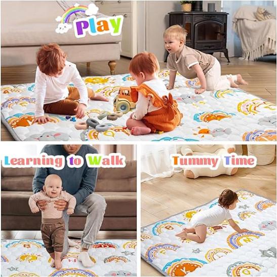 Baby Play Mat for Floor - 127x127cm Foldable Kids Playmat, Soft Non-Slip Crawling Matt for Toddlers 1 2 3 Years