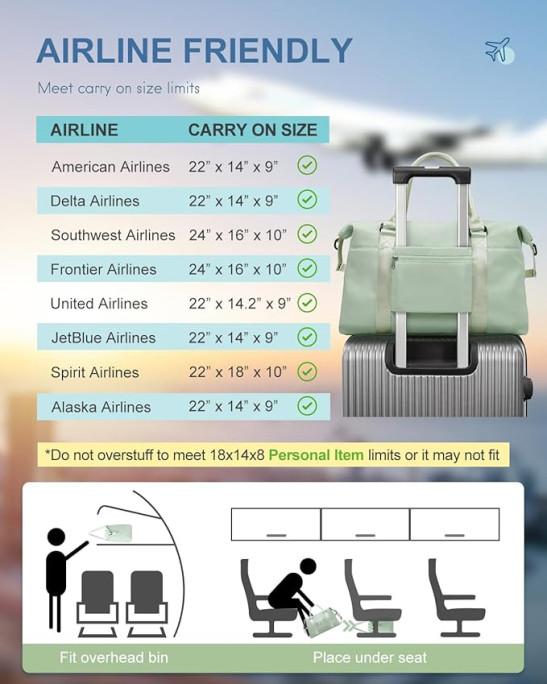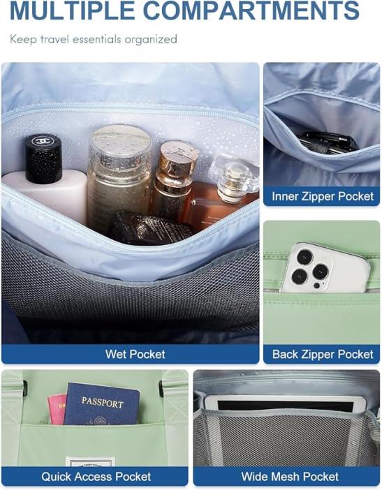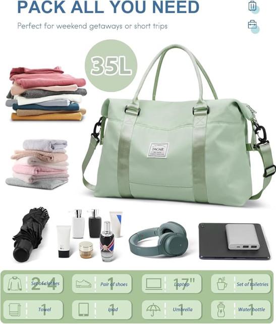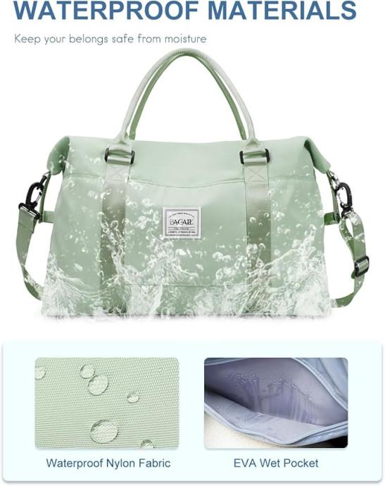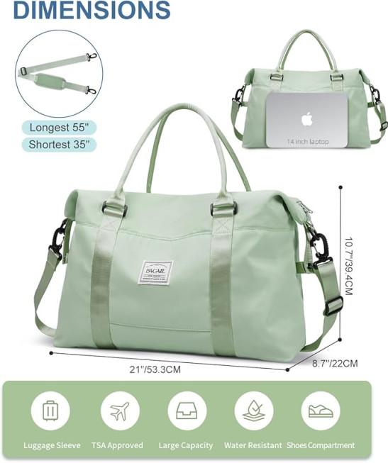 BAGAIL Travel Duffel Bag, Weekender Bags, Overnight Gym Carry On Tote Bag with Wet Pocket, Hospital Mom Bag for Labor and Delivery - Pale Green