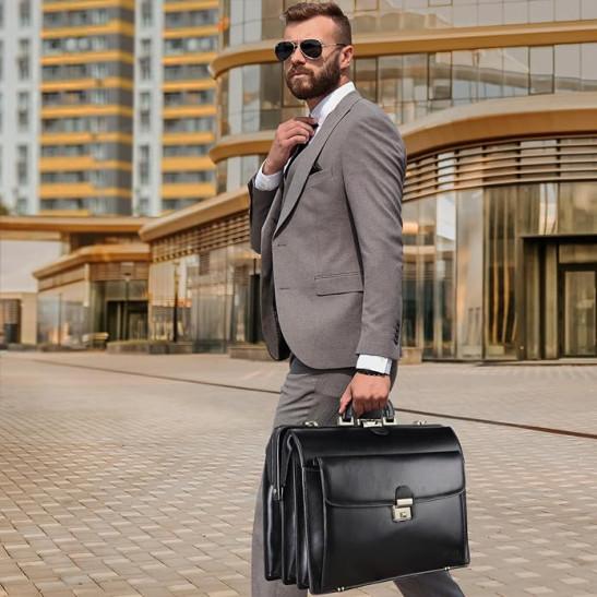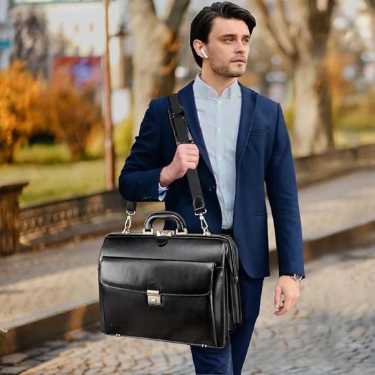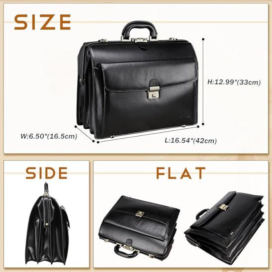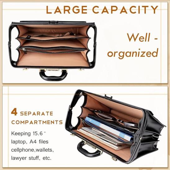 Banuce Leather Briefcase for Men with Lock Lawyer Attorney Litigator Bag 15.6 Laptop Attache Case Hard Doctor Style Bag