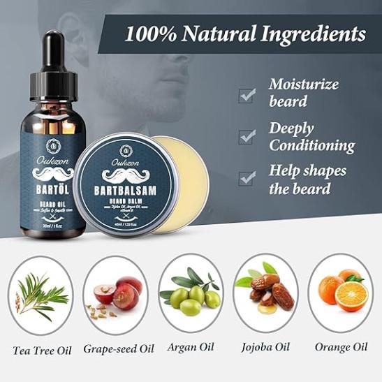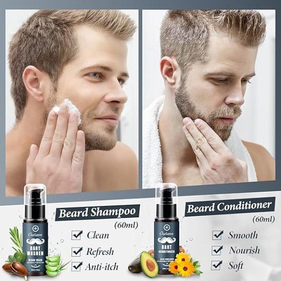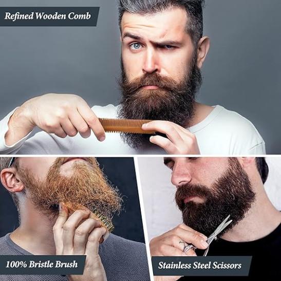 Beard Grooming Kit for Men, 10 in 1 Beard Trimming Gift Set with Beard Shampoo, Beard Conditioner, Beard Oil, Balm, Beard Comb,Brush, Scissors, Beard Shaper and Storage Bag -Mens Beard Growth Care Set